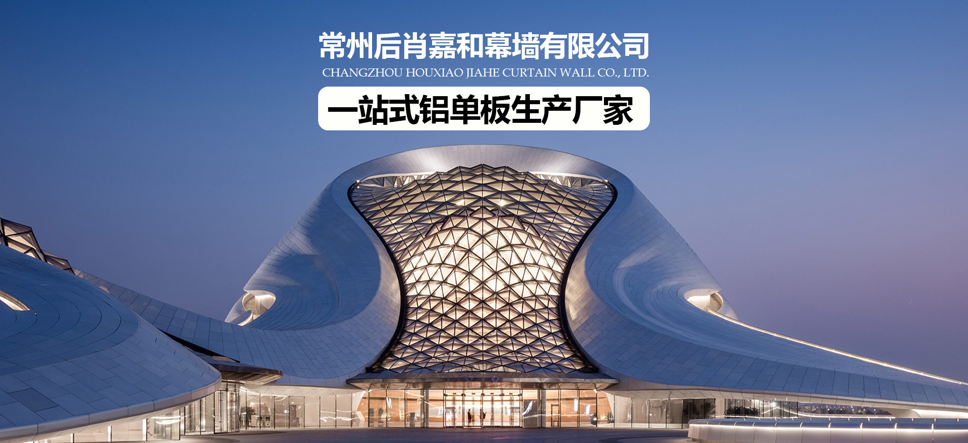 常州后肖嘉和幕墙有限公司成立于2002年,位于美丽富饶的江南龙城“江苏常州”,史称“中吴要辅,八邑名城”,历史人文荟萃,物华天宝。公司南靠沪宁高铁与杭大运河,北临京沪高铁与沪蓉高速,地理位置独厚。 嘉和集团旗下:常州后肖嘉和幕墙有限公司,常州鑫笃义幕墙材料有限公司,江苏申能建设工程有限公司,江苏中弘铝业有限公司,常州中铭幕墙科技有限公司,嘉和集团主要生产制造氟碳铝单板,铝蜂窝板,石材铝蜂窝板,木纹,仿石材铝单板,预辊涂铝板,预辊涂仿石材铝板,压花仿石材铝板,金属铜铝板幕墙,铜铝复合铝板幕墙,工业铝型材,铝合金门窗,塑料门窗,节能防火新型装饰板,氟碳外墙涂料,真石漆外墙涂···